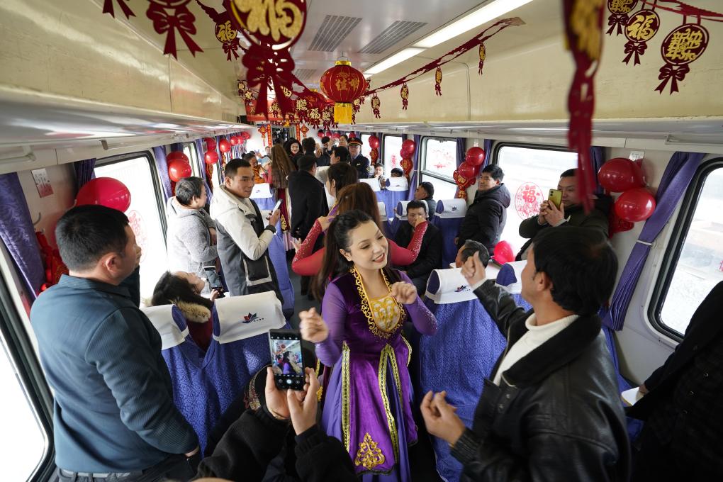 车窗外,广袤的戈壁滩一望无际;车窗内,新春的烟火气越来越浓。不同的乡音此起彼伏,手边是大包小裹的心意,话里话外,是对团圆的期盼。