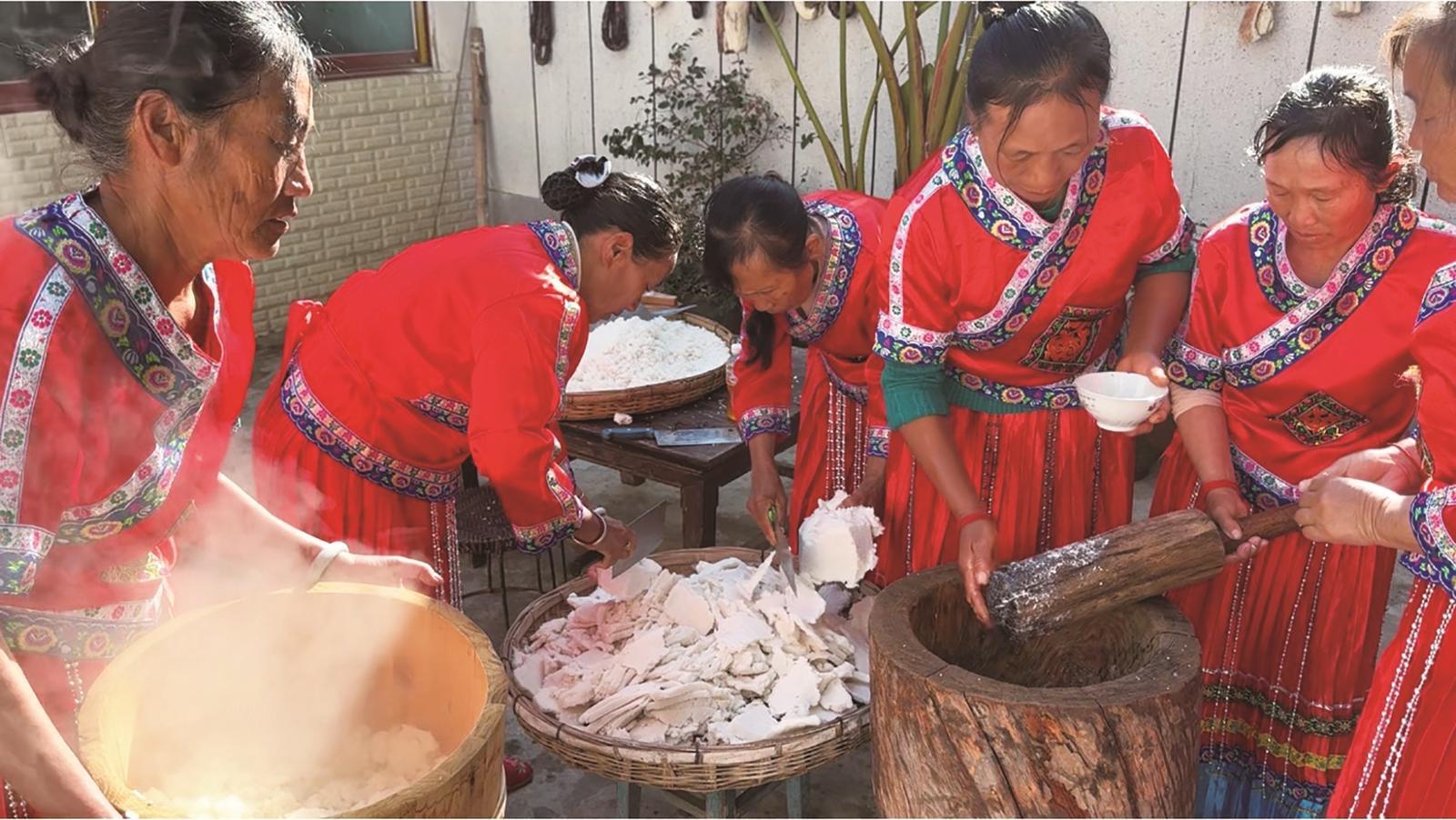 临近年关,凤庆县村寨里,杵臼相撞的“咚咚”声便在街坊间悠悠响起,混着醇厚的米香,揉进了冬日的暖阳里。