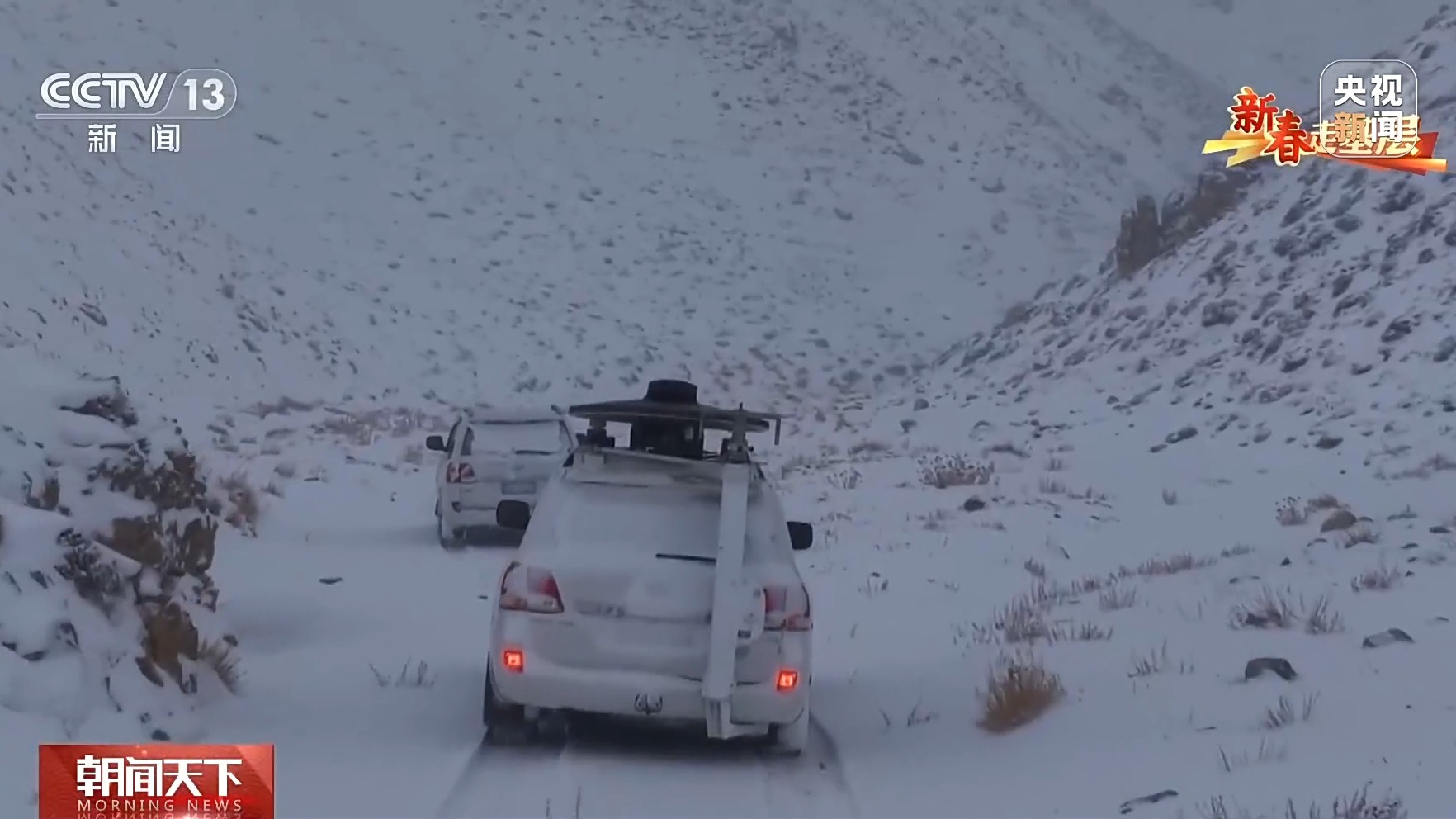为了防止车子冻住,聂帅没多长时间就下车查看情况,一发现积雪埋住车轮,就招呼大家轮流铲雪。平时简单的铲雪动作,在深夜的高海拔缺氧环境里格外费力。就这样停停干干了差不多一个小时后,北京监控中心终于传来消息,信号已经调整完毕。团队不敢停留,再次赶往测试的峡谷。