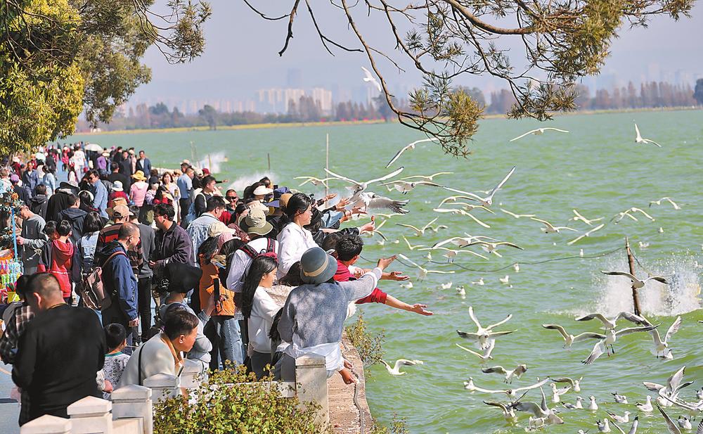 春节假期,到昆明滇池畔观鸥成为不少游客游览“春城”的不二选择。大年初一以来,昆明滇池国家旅游度假区的客流量呈明显增长趋势,景区在安保、保洁等岗位增派力量,全力保障游客游玩体验。(云南日报 记者陈飞 黄兴能 摄)