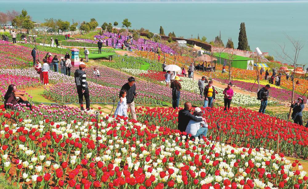 春节假期,位于昆明滇池畔的云海花田吸引了市民和游客前来打卡。 记者 杨峥 摄