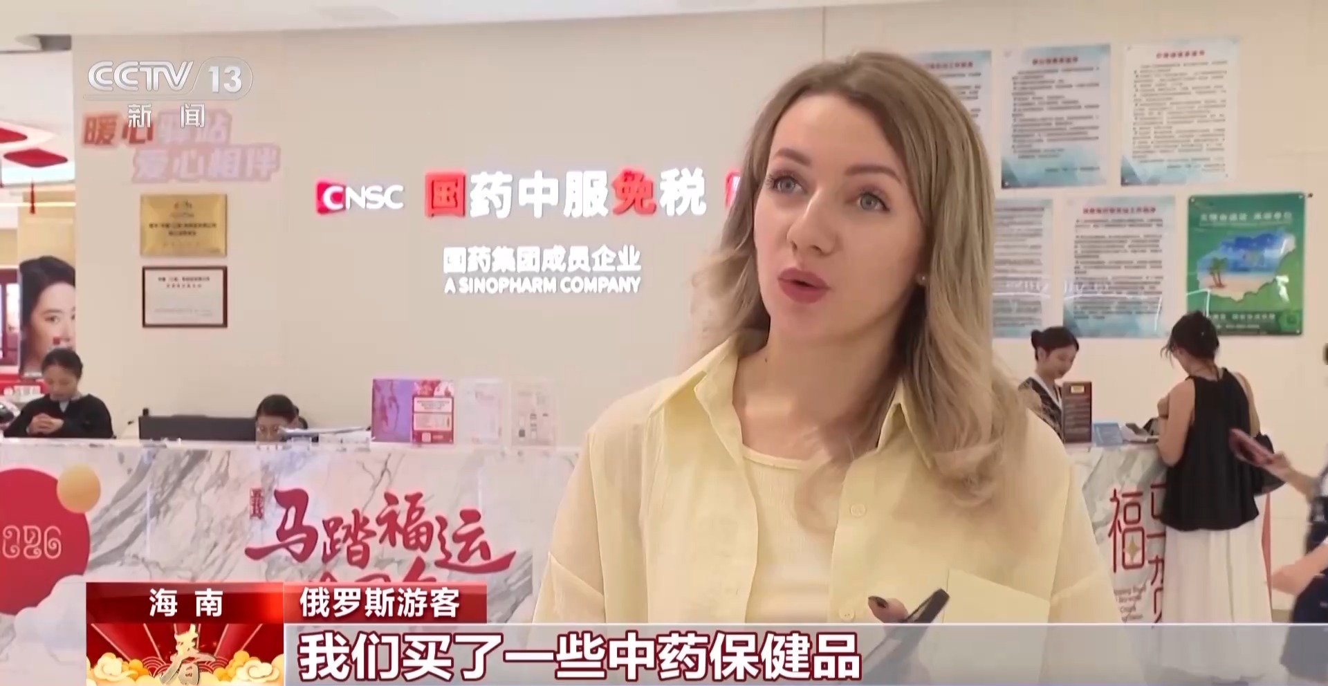 俄罗斯顾客:我们买了一些中药保健品,我朋友买了电子产品,还有运动商品也很划算。