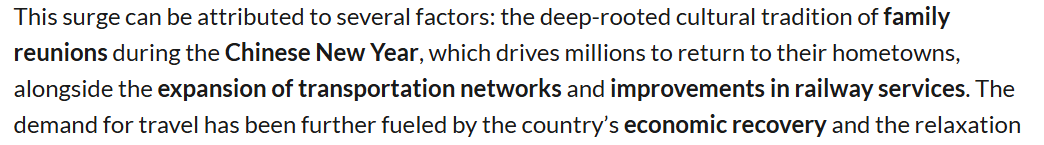 报道认为,春运既是一项庞大的交通组织工程,也承载着浓厚的社会文化意义。中国铁路系统展现出的极强运输保障能力,也体现出中国交通基础设施和调度体系的成熟。而春运的发展与变迁,更折射出了中国的发展进步与现代化进程。