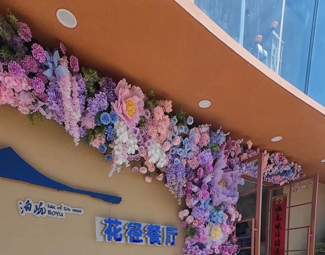 骑行间隙,休憩打卡氛围感拉满。江尾畅骑俱乐部内谢谢你咖啡正常营业,醇厚手冲搭配现烤菠萝包,是歇脚充电的绝佳选择。网红打卡地泊屿花径餐厅花艺造景精致,巨型BOBO兔装置颜值出众,落地窗直面滇池美景,出片率极高。餐厅已于正月初四恢复正常营业,到访游客可安心进店用餐、拍照休憩。