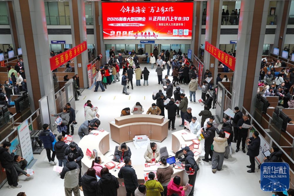 ↑ 这是2月24日拍摄的江苏省海安市2026春风行动暨就业援助季专场招聘活动现场。新华社发(顾彬斌 摄)