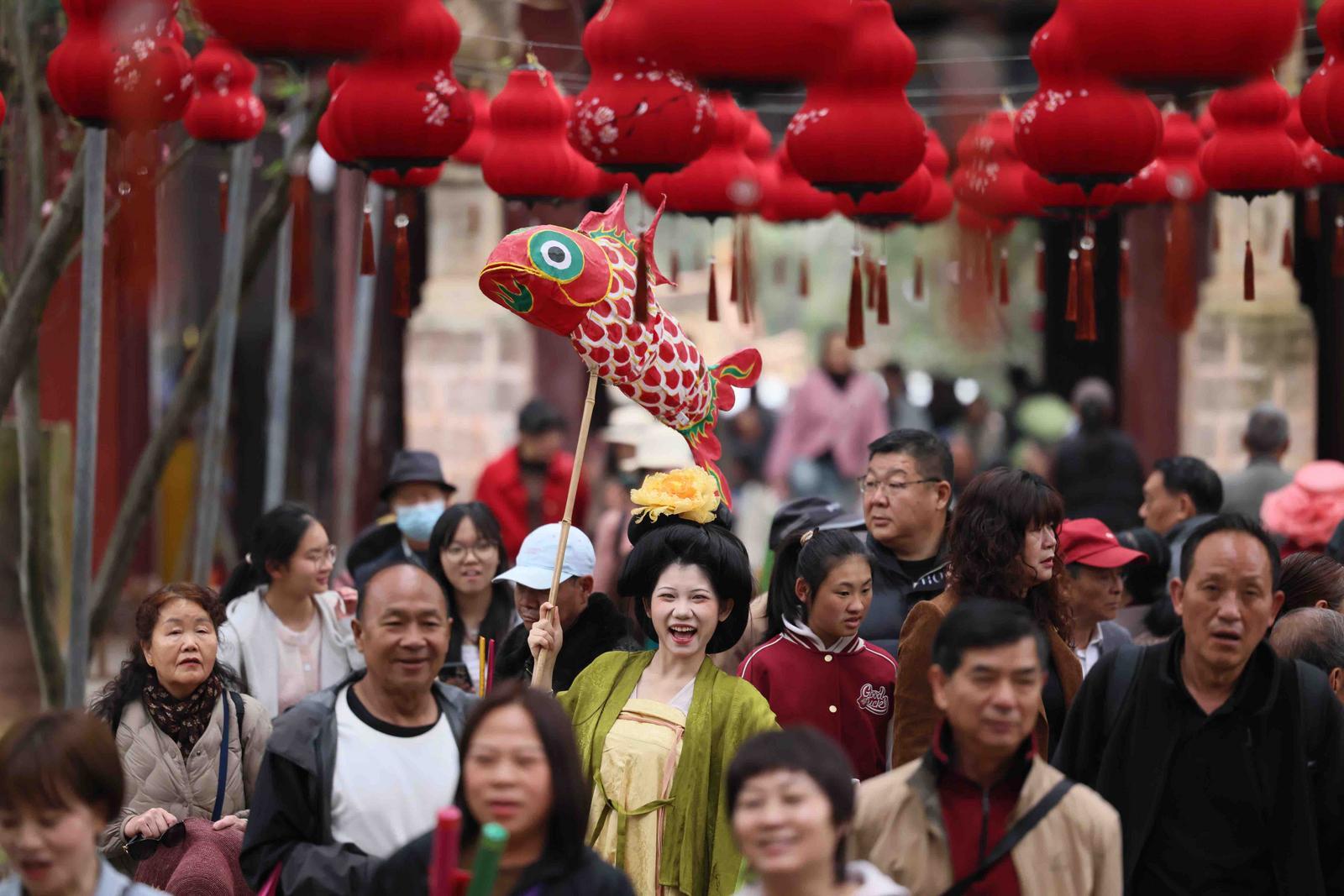 2026年2月25日,农历丙午马年正月初九,传承400余年的昆明大年初九“金殿庙会”以“神行甲马·乐赏山茶”为主题在鸣凤山上热闹开锣,传统祈福习俗与新潮游园体验相融,老昆明的年味儿在熙攘的人群中拉满,成为市民游客新春祈愿、乐享民俗的好去处。据昆明金殿风景名胜区预估,当天赶庙会的游客约3.8万人次。
