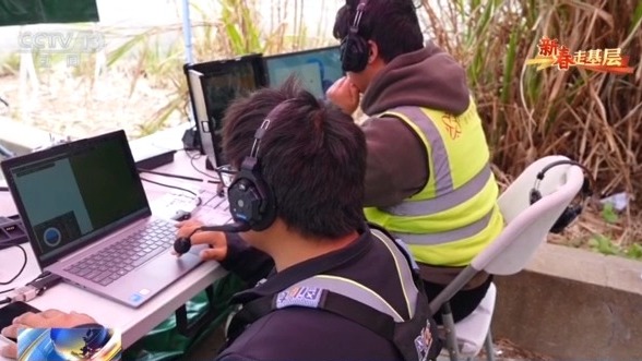 测试中,现场忽然刮起南风,导致无人机飞行轨迹出现小幅偏差。控制室内,队长王继昊发现无人机飞行轨迹有偏离,他马上提醒现场操控员蒲华宇。