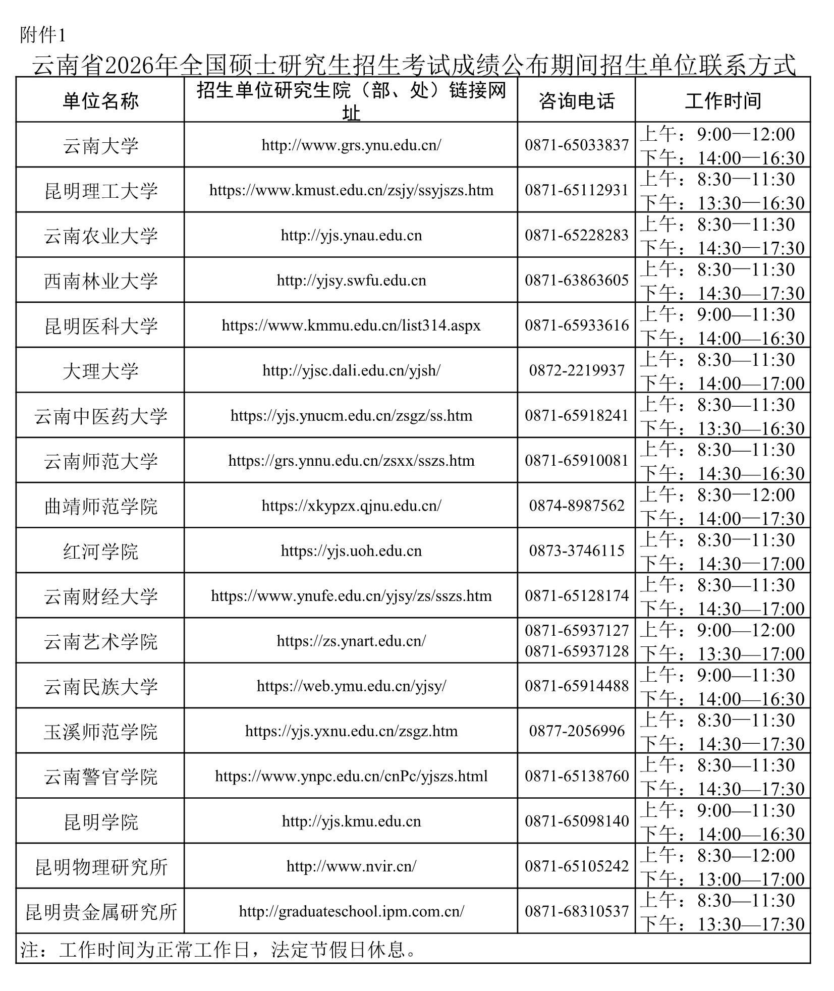 2月26日,云南省招生考试院发布《云南省2026年全国硕士研究生招生考试初试成绩查询须知》,本次考试成绩将于2026年2月28日公布。
