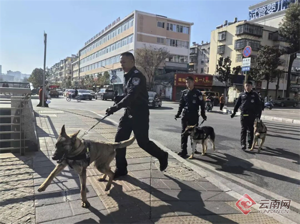 针对篆新农贸市场人流密集、易滋生街面违法犯罪的特点,昆明市公安局五华分局大观派出所联合公安部昆明警犬基地,采取“警犬+警力”的叠加巡控模式,以战代训、下沉市场,开展区域巡逻防控专项行动,全力筑牢安全防线。