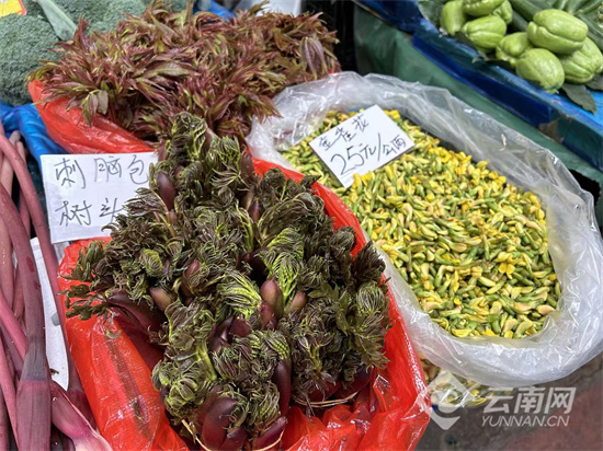 对于云南人来说,春天的到来不仅是枝头的新绿,更是舌尖上那一口鲜嫩的春花春菜。2月26日,记者在东华菜市场和大观篆新农贸市场看到,棠梨花、金雀花、刺脑包等各类时令春花春菜抢“鲜”上市,菜市场变成了热闹的“春日市集”。