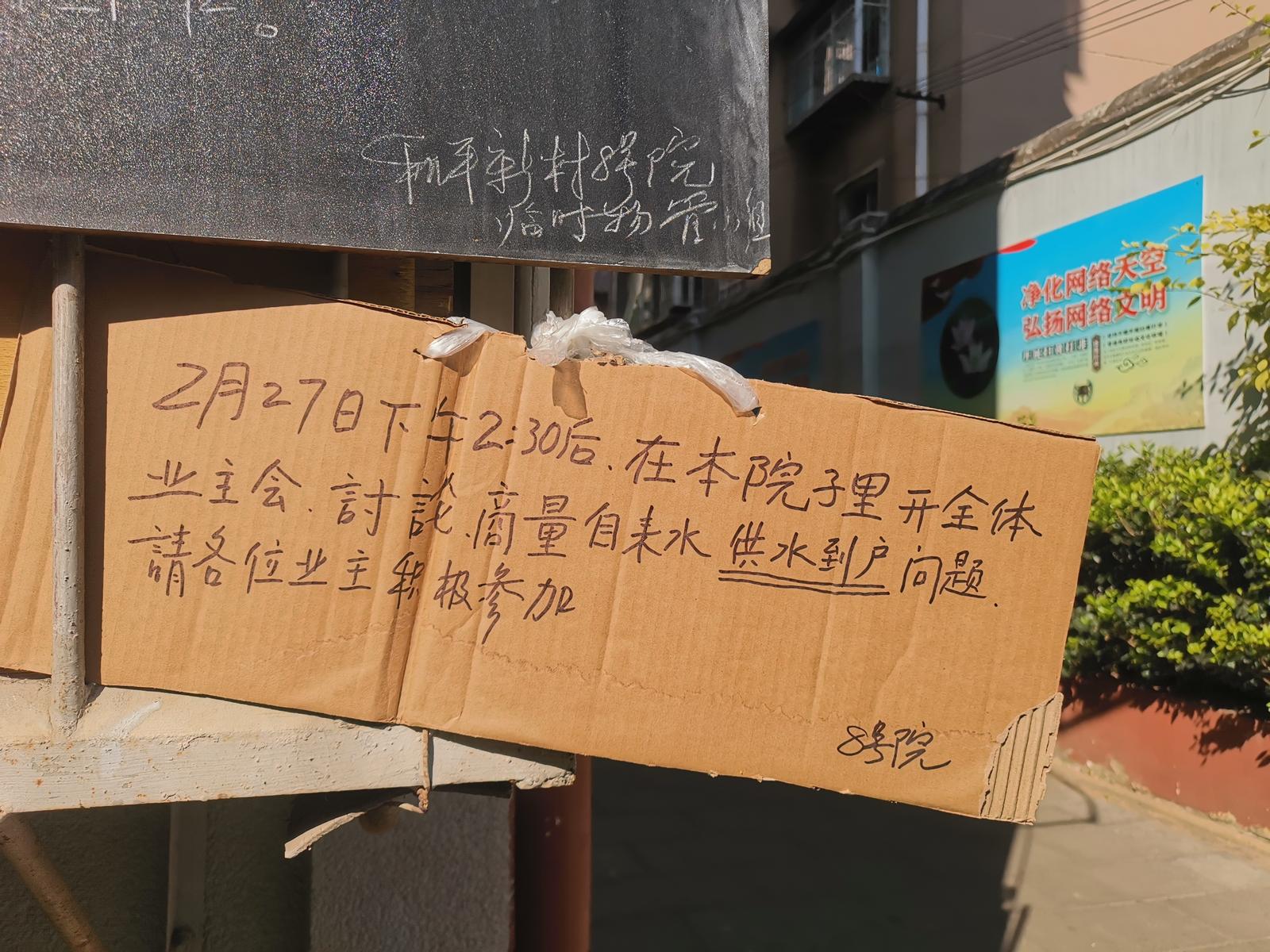 8号院内张贴的通知与倡议书,还原了此次停水的全过程。