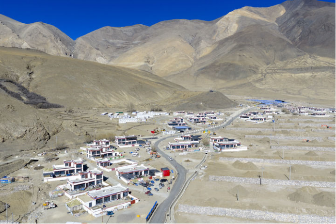 西藏定日县盆吉乡恰巴村卓堆自然村的村道两侧,一栋栋藏式新居整齐排列。