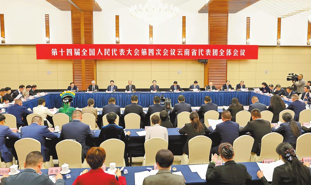3月3日下午,出席第十四届全国人民代表大会第四次会议的云南省代表团举行全体会议。