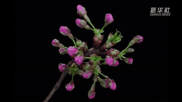 近日,上海辰山植物园河津樱盛放,开花量达五到六成,进入最佳观赏期。