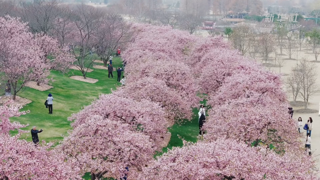 漫步樱花树下,人与花构成了春日特有的浪漫风景。