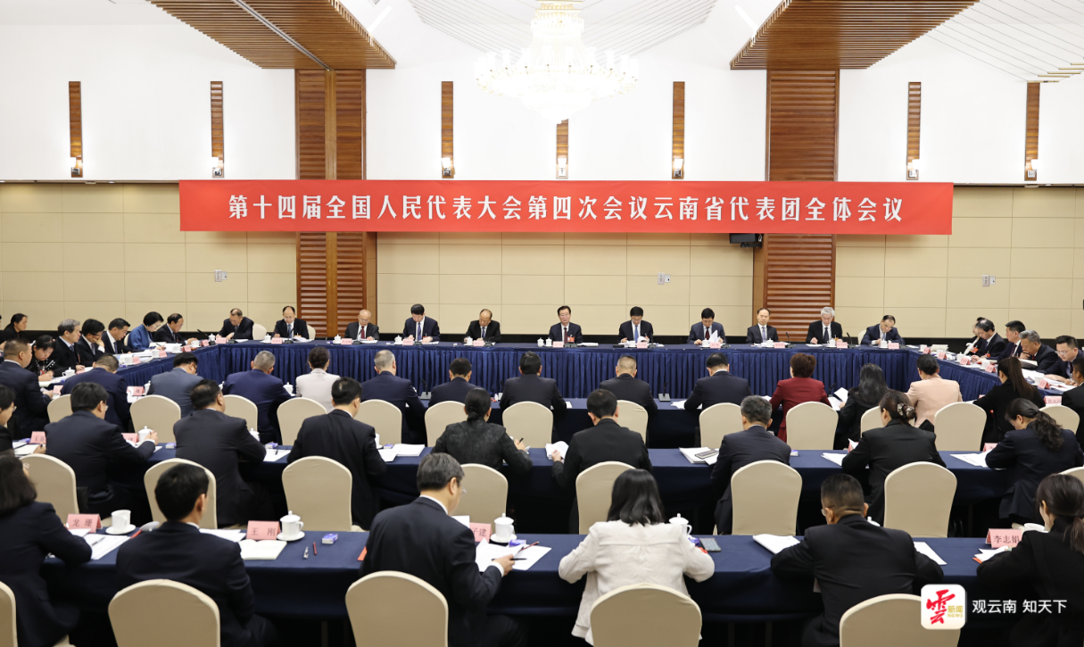 3月6日,出席十四届全国人大四次会议的云南省代表团举行会议。