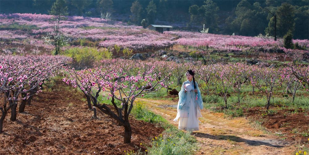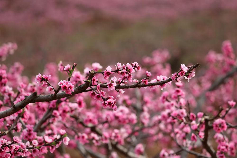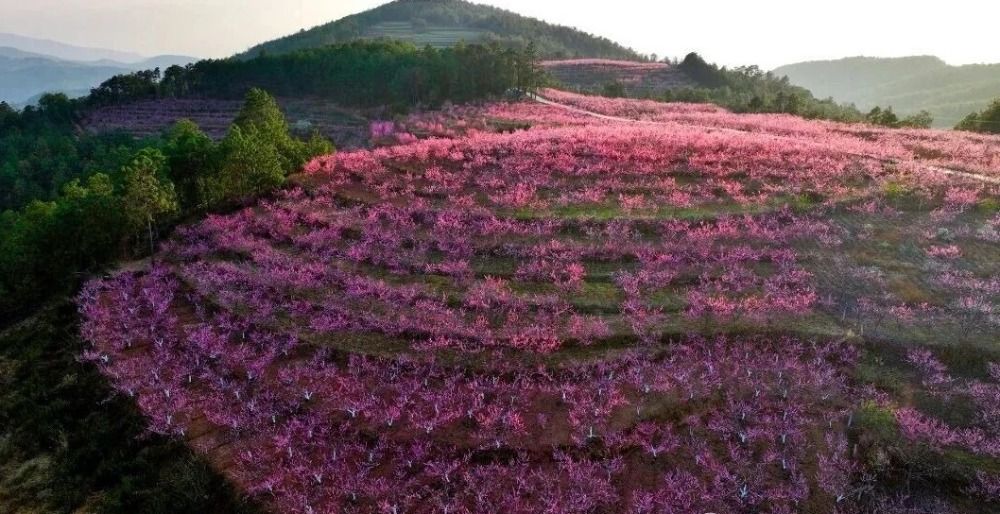 阳春三月,禄丰市土官镇乌龙潭万亩桃园化作粉色海洋。