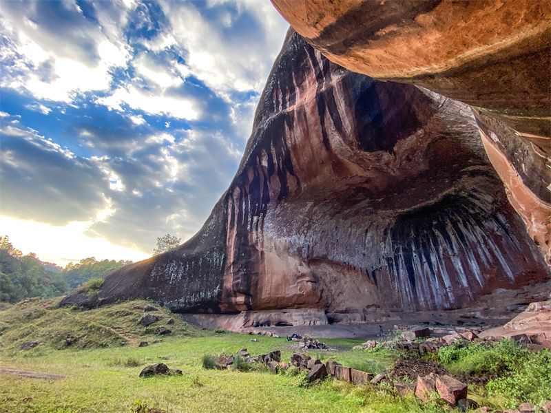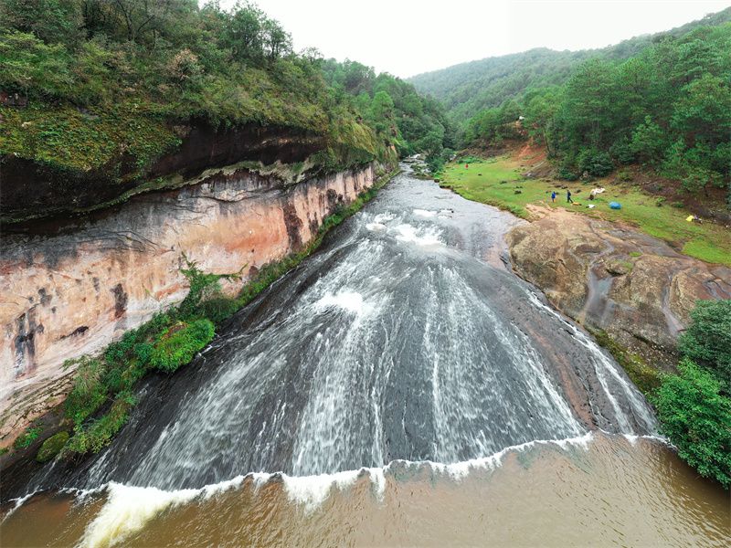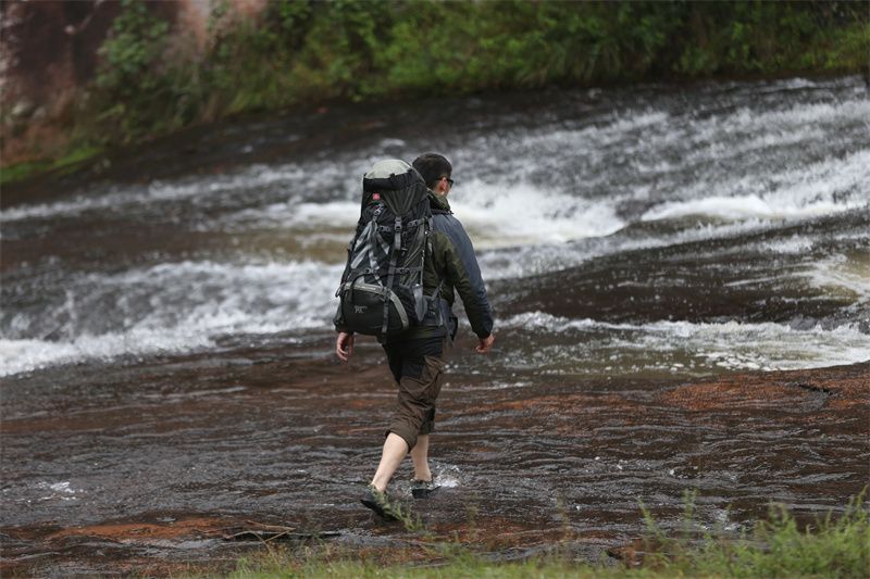清澈的河水在宽阔而坚硬的河床上静静地流淌,脱鞋下水,踩在红砂岩的河床上,没有碎石,没有淤泥,任由清澈的河水轻抚你的肌肤,惬意极了。