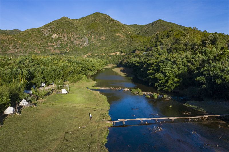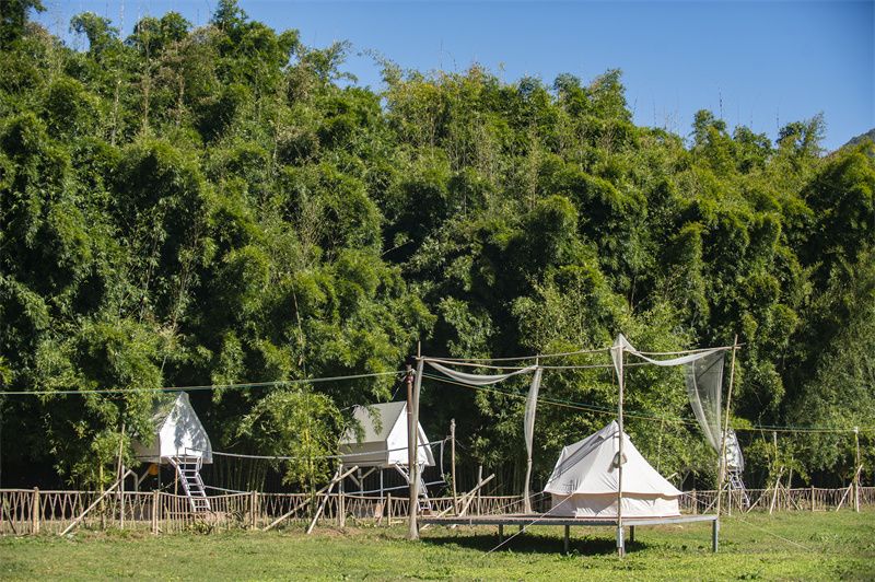 竹溪村是“中国美丽休闲乡村”,能满足游客吃喝玩乐等旅游需求,你可以在小溪边、竹林里自己搭建帐篷,也可以直接到竹溪村体验当地的帐篷民宿,零距离亲近大自然。
