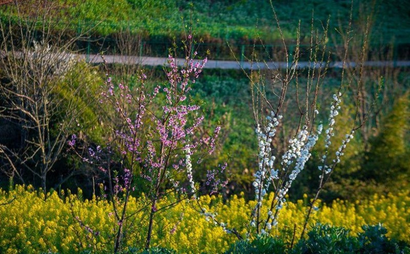 春季里,村内的桃花、梨花盛放,村前的农田里长满绿油油的麦子,屋后的坡地上开着红艳艳的马缨花,一幅春日美景图呈现在眼前。