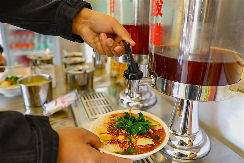 在热闹的集市上,独具特色的江边乡美食琳琅满目,软滑的水米线、凉粉、卷粉,加上秘制佐料和自制的酸角醋,再配上一碗香甜冰凉的冰粉、凉虾,让你吃了就念念不忘。