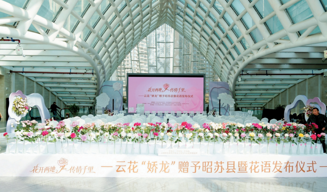 近年来,云南深入实施种业振兴行动,滇系种业振兴五年取得“芯”突破。比如,省农业科学院培育了1000多个“中国风”月季新株系,每年向全国市场推广数十个月季新品种,体现了我省种业研发的能力和水平。2026年1月,云南新品月季被命名为“娇龙”,这是对新疆昭苏县贺娇龙同志的敬仰和纪念,也是云南与新疆两地加深情谊、共同铸牢中华民族共同体意识的体现。图为云花“娇龙”赠予昭苏县暨花语发布仪式。云南日报社供图