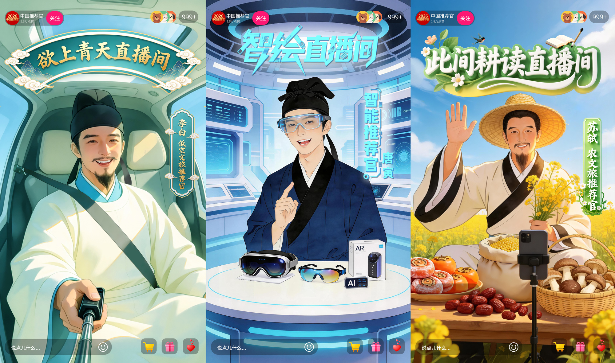 李白、唐伯虎、苏轼合体直播!