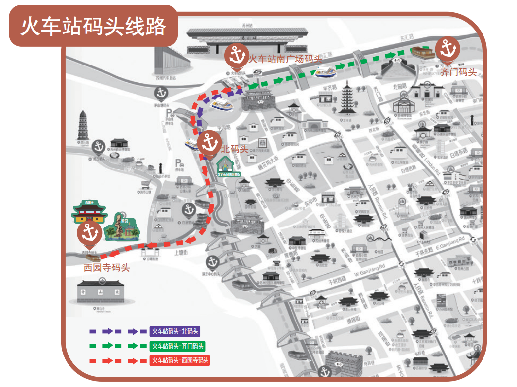 铁路游船无缝接驳:苏州火车站南广场码头(三条航线可选)