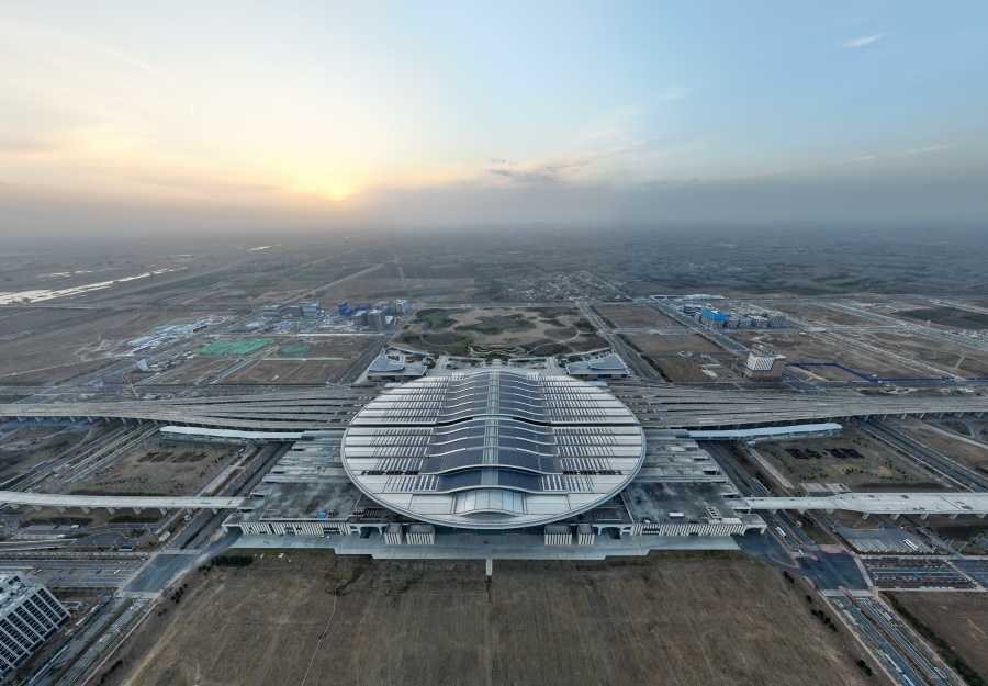 2024年3月29日,京雄城际铁路雄安站(无人机照片)。新华社记者 牟宇 摄