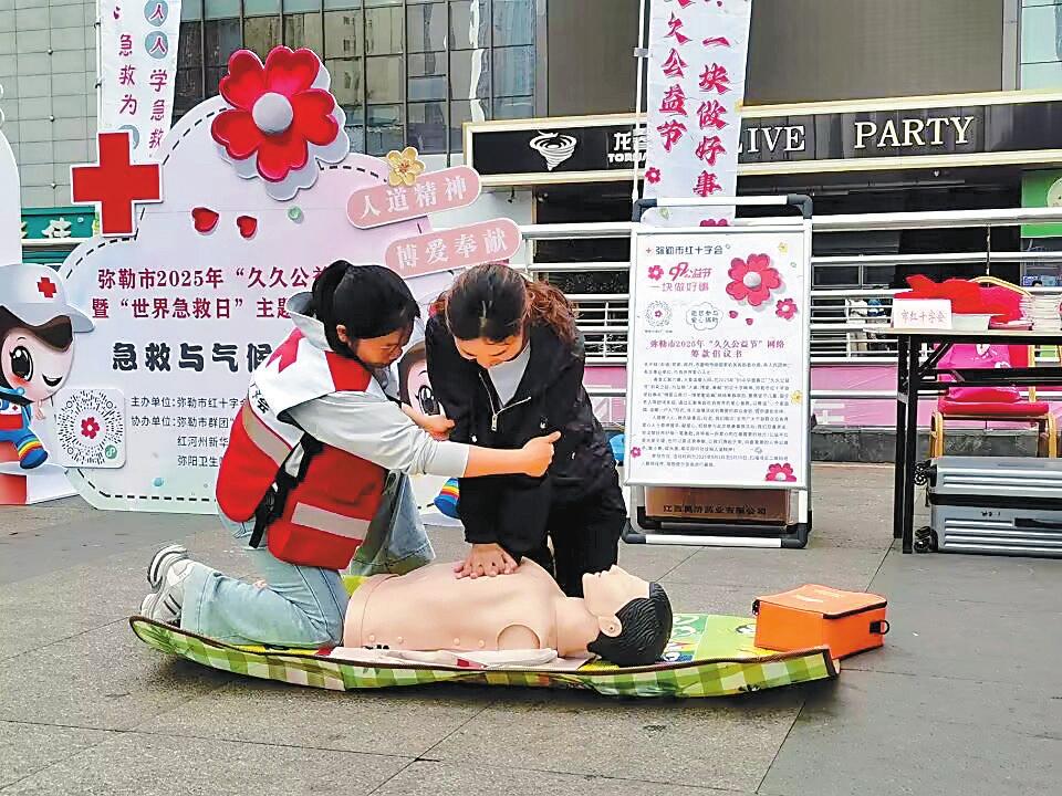 弥勒市红十字会工作人员(左)进行应急救护培训。本报通讯员 施星宇 摄