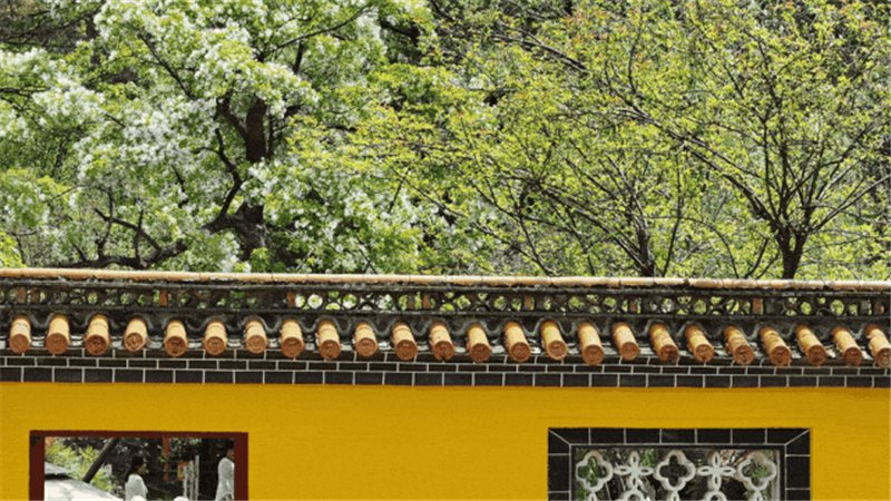 让白花与飞檐、红柱形成色彩碰撞