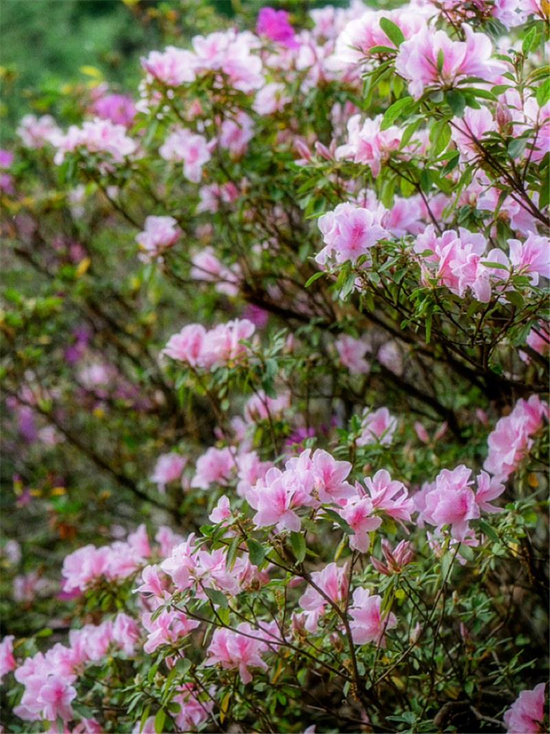 红、粉、紫交织成“醉美龙潭杜鹃展”