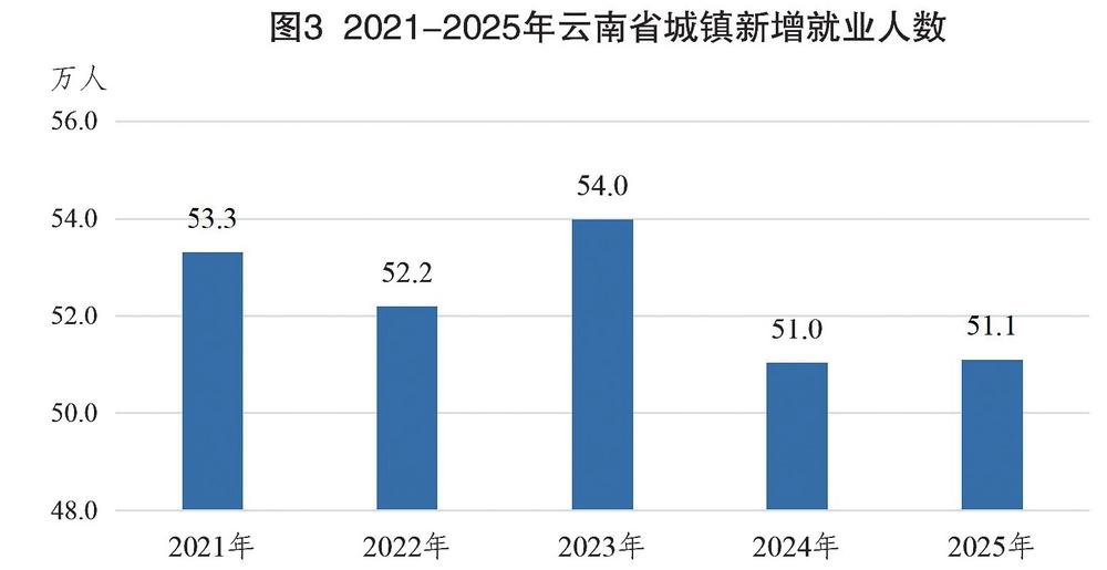 图3 2021—2025年云南省城镇新增就业人数