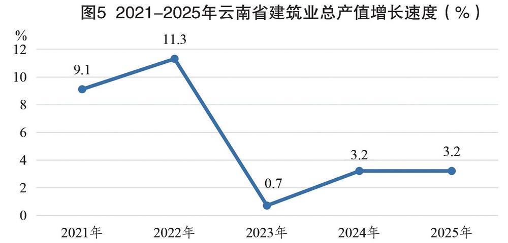 图5 2021—2025年云南省建筑业总产值增长速度