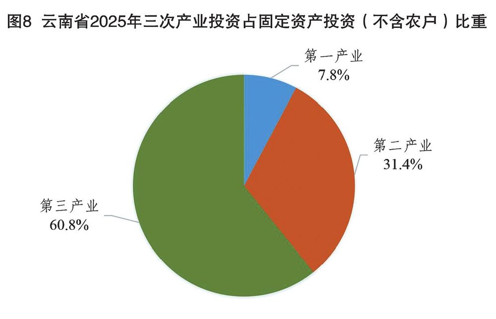 图8 云南省2025年三次产业投资占固定资产投资(不含农户)比重