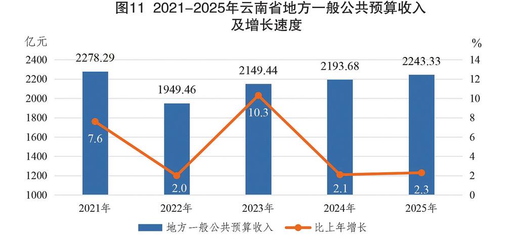 图11 2021—2025年云南省地方一般公共预算收入及增长速度