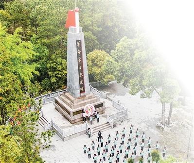 江西省赣州市会昌县希望小学的师生来到革命烈士纪念碑前开展“清明祭英烈,薪火永相传”主题祭扫活动。刘兆春摄(人民图片)