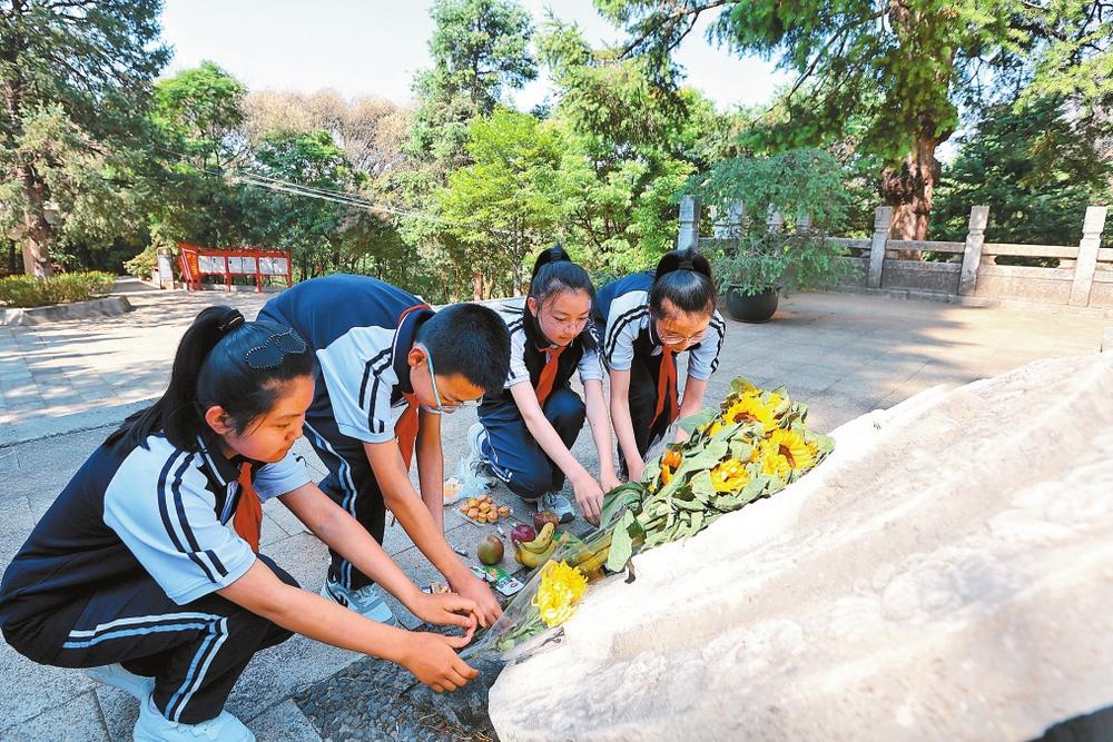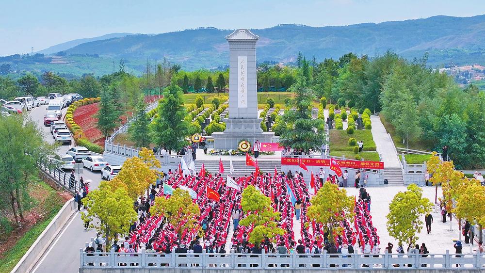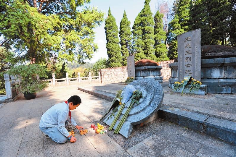 4月4日,昆明市官渡区南开日新学校学生来到黑龙潭革命烈士陵园祭奠英烈。记者高吴双/ 摄