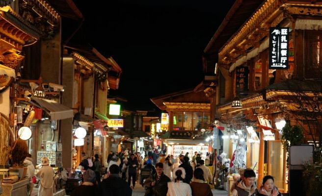 夜晚的香格里拉独克宗古城,游人熙熙攘攘。记者朱海/摄