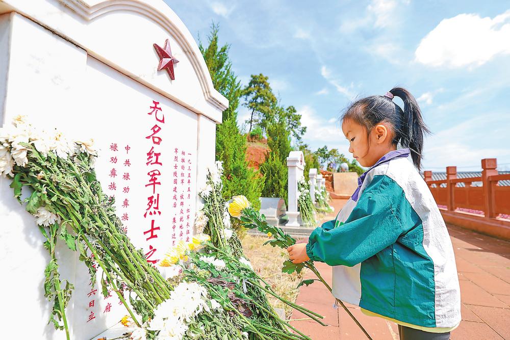 4月5日,禄劝彝族苗族自治县九龙“红军洞”烈士陵园内,松柏苍翠、青山肃穆,红军烈士纪念碑巍然矗立,当地干部群众自发前往烈士陵园,在红军烈士纪念碑、红军烈士墓前驻足默哀,敬献鲜花,表达对革命先烈的深切追思。