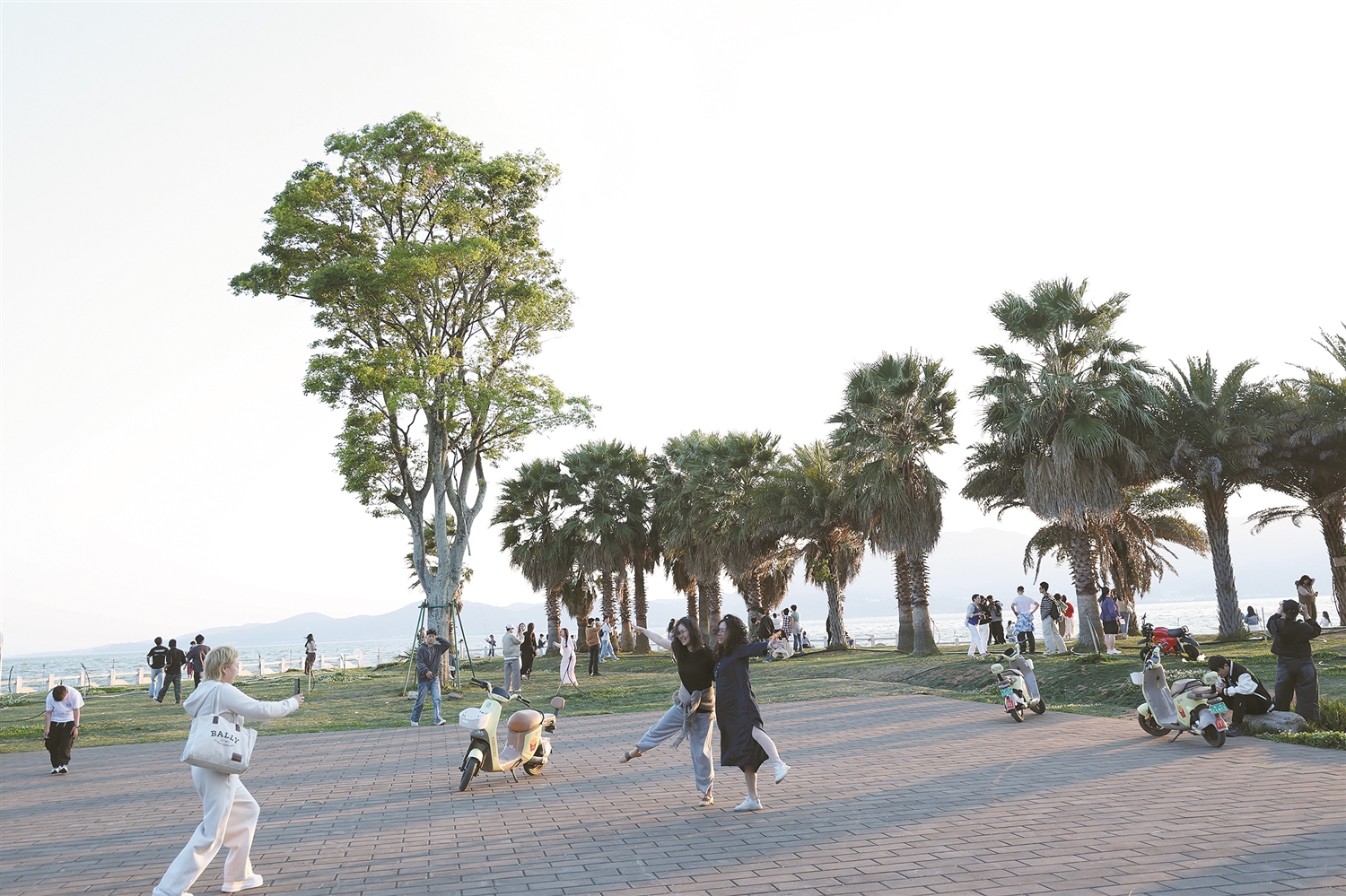 “我们一家从海埂大坝出发,途经星海半岛、卧龙古渔村等景点,一路骑行,一路赏花,书本上的图景,化作了眼前真切的风光。”来自大理的初二学生曹卓杰说,此次清明假期连着学校的春假,出游时间更加充裕。