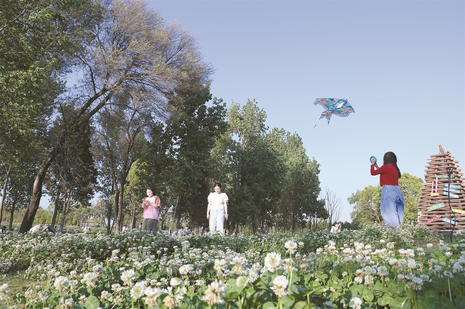 沿着绿道,人们有的走进附近村庄,搭帐篷露营、放风筝、野餐烧烤;有的徜徉于花海之中,拍照打卡,赴一场“与春天的约会”;有的停在路边的咖啡摊前,来一杯山茶花冷萃,体验鲜花饼手作,购买瓦猫、扎染玩偶等特色文创。
