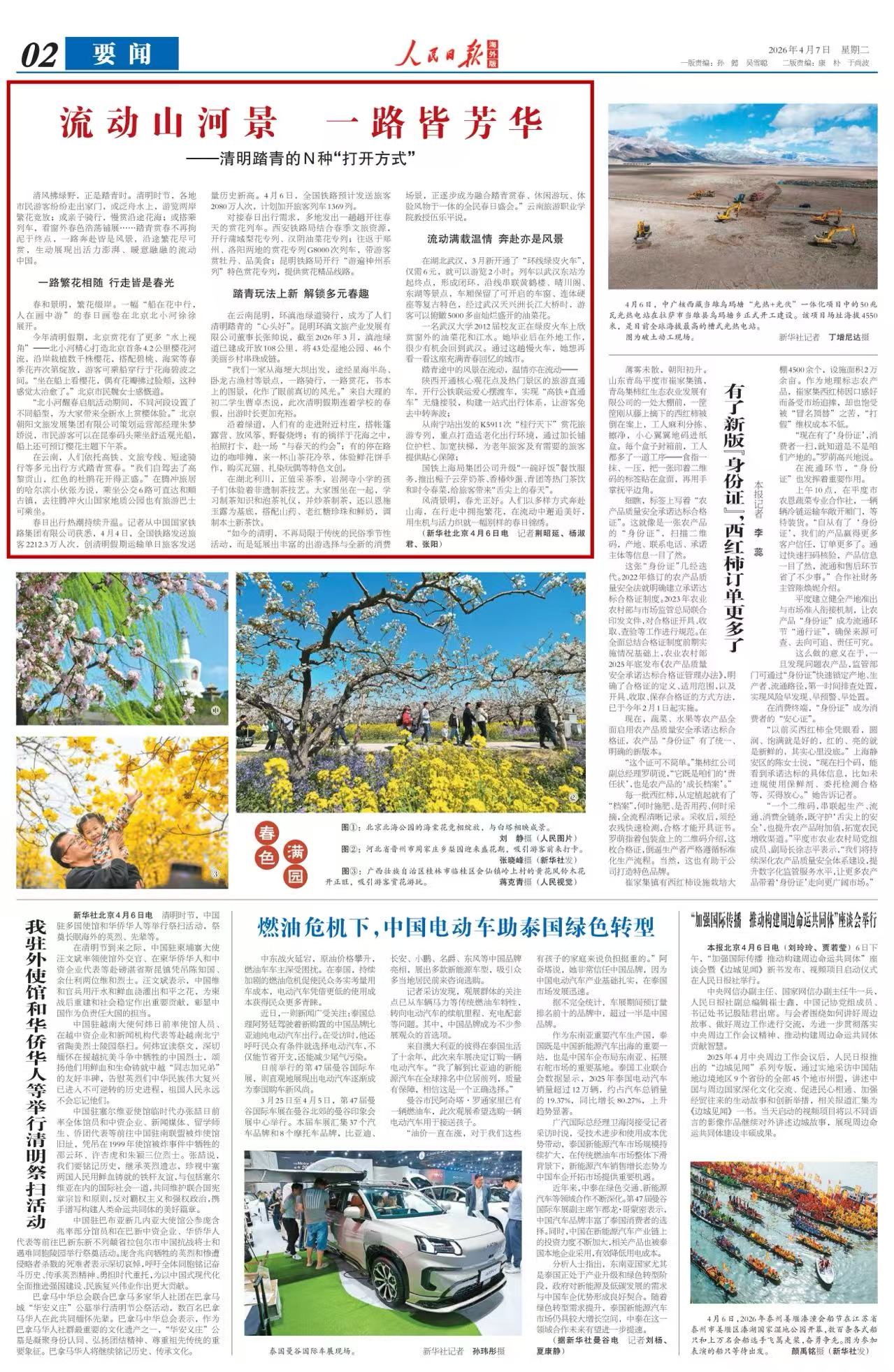 4月7日,人民日报海外版刊发《流动山河景 一路皆芳华——清明踏青的N种“打开方式”》,报道云南昆明环滇池绿道骑行成为清明踏青“心头好”,展现滇池绿道建成开放108公里,将43处湿地公园、46个美丽乡村串珠成链的显著成效。
