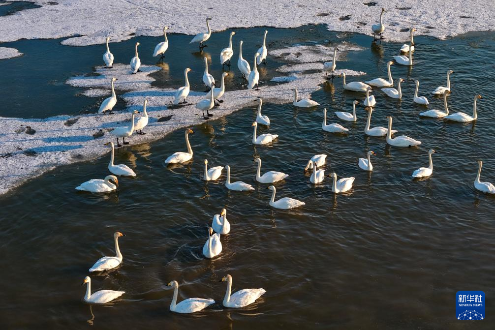 近日,随着气温回升,黑龙江省佳木斯市境内的松花江富锦段冰融水暖,迎来大批北归天鹅。开化的水域成为候鸟的乐园,为春日江畔增添了勃勃生机。