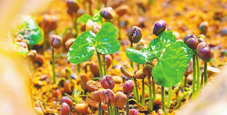 春日清晨,临沧市镇康县哈里咖啡良种繁育核心基地里,20余名工人分工协作,疏土、整地、套袋、架模……一排排营养袋整齐排列,静待咖啡新苗移栽。“我们苗圃育有7个品种,今年计划育苗800万株,目前已全部完成,正准备移栽。”基地负责人唐大和边介绍情况边细心观察长势。该基地是云南镇康哈里咖啡庄园有限责任公司的核心育苗基地,占地170亩,年繁育优质种苗800万株,可满足3万至4万亩咖啡园品种改良需求。作为镇康县招商引资重点企业,该公司构建“种植+初精加工+文旅+直播销售”全产业链,打造“企业+村集体+农户”利益共同体,2025年线上销售额超1600万元,基地年产值达1.4亿元,有力带动了村民增收。(云南日报 通讯员李建军 徐杰 文/图