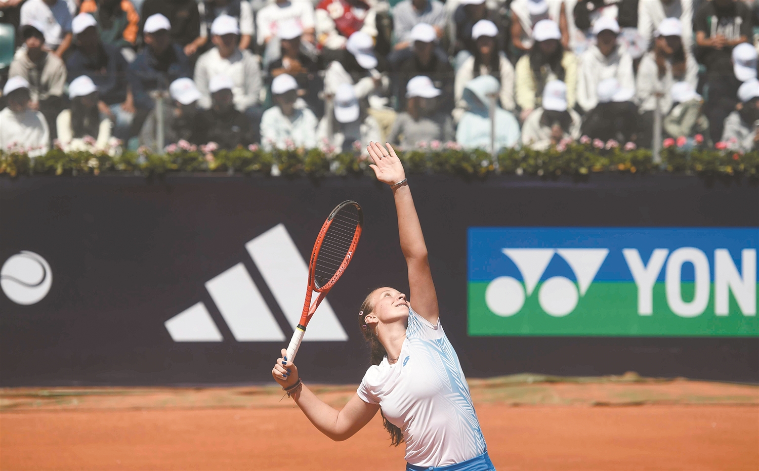 4月7日,2026昆明网球公开赛开幕仪式在安宁温泉半岛国际网球中心举行。图为选手在比赛中。记者赵伟摄