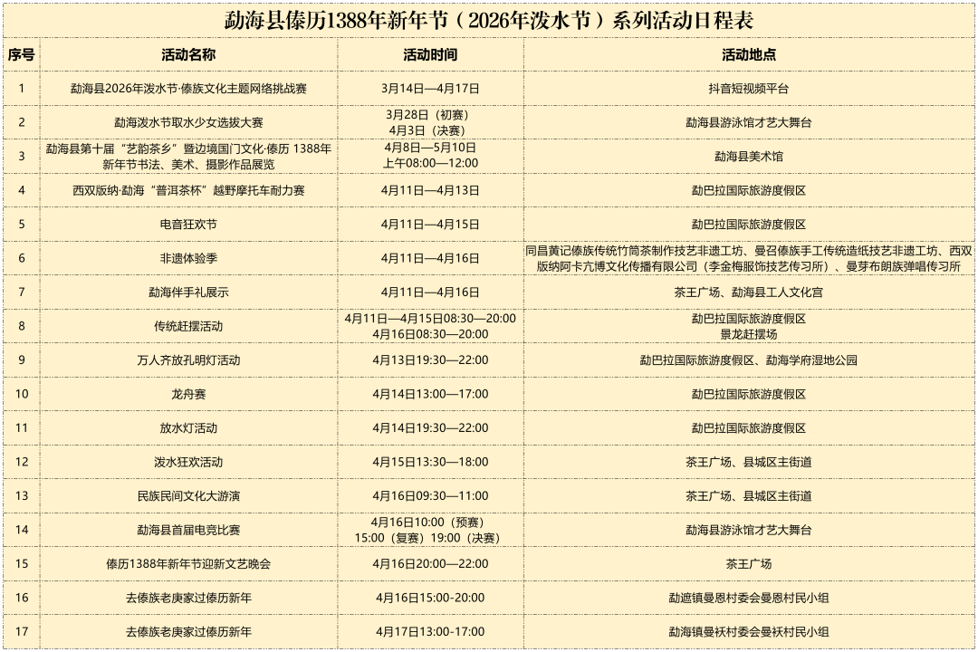 除了西双版纳州主会场,景洪市、勐海县、勐腊县及各乡镇系列活动等你来!