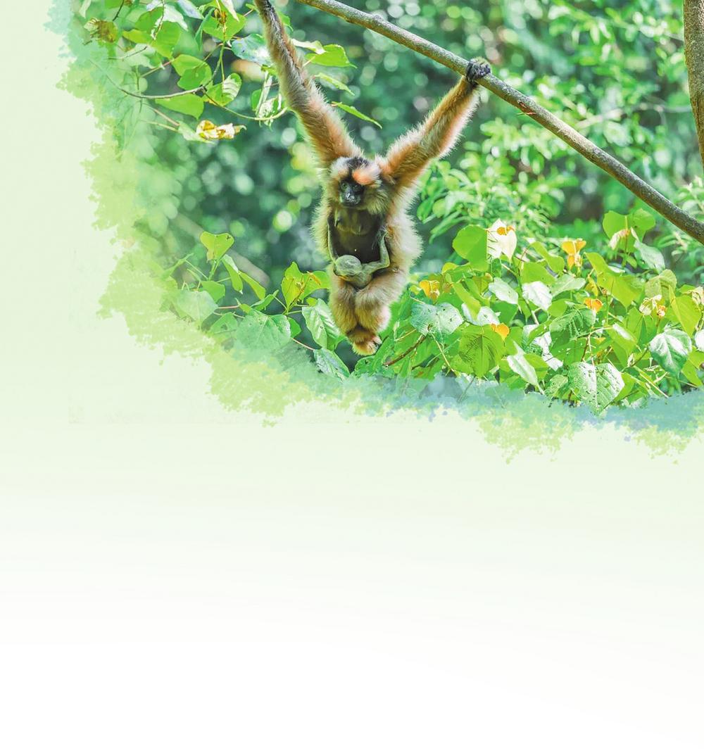 连日来,工作人员深入实地进行跟踪监测,并拍下了视频资料。视频画面显示,西黑冠长臂猿妈妈在树冠上采食植物的嫩叶、花、果,乳白色的猿宝宝紧紧地抱在猿妈妈怀里,小嘴不停地吮吸着妈妈的乳汁,还时不时探出脑袋观察四周。从监测画面可以看出,产仔的西黑冠长臂猿及猿宝宝状态良好。