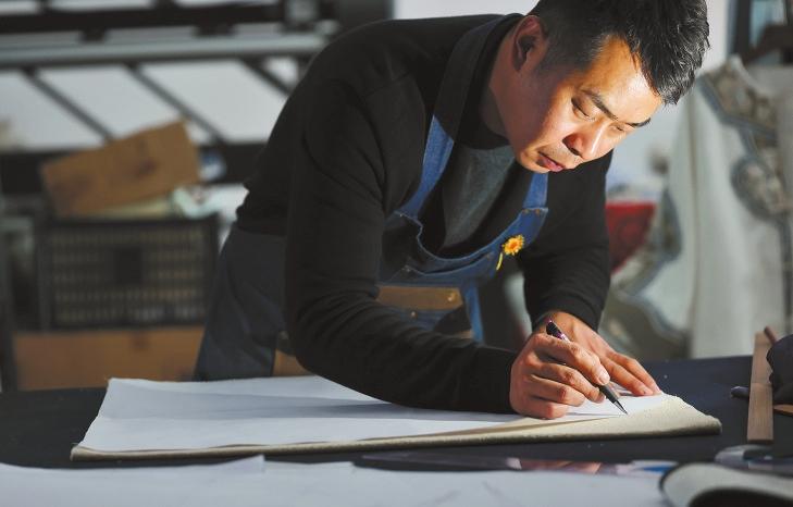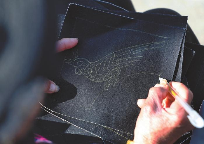 绣娘正在手绘图案。