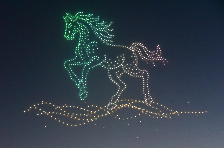宁强县无人机表演。新华社发